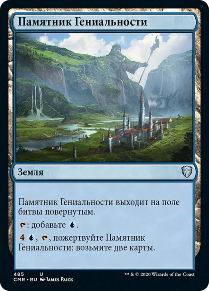 | Rules | Memorial to Genius enters the battlefield tapped. : Add . , , Sacrifice Memorial to Genius: Draw two cards. |
