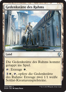 | Rules | Memorial to Glory enters the battlefield tapped. : Add . , , Sacrifice Memorial to Glory: Create two 1/1 white Soldier creature tokens. |