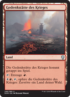 | Rules | Memorial to War enters the battlefield tapped. : Add . , , Sacrifice Memorial to War: Destroy target land. |