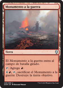 | Rules | Memorial to War enters the battlefield tapped. : Add . , , Sacrifice Memorial to War: Destroy target land. |