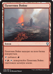 | Rules | Memorial to War enters the battlefield tapped. : Add . , , Sacrifice Memorial to War: Destroy target land. |