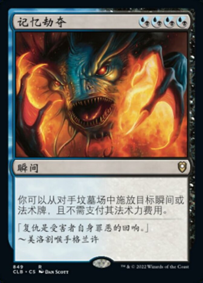 | Rules | You may cast target instant or sorcery card from an opponent's graveyard without paying its mana cost. |