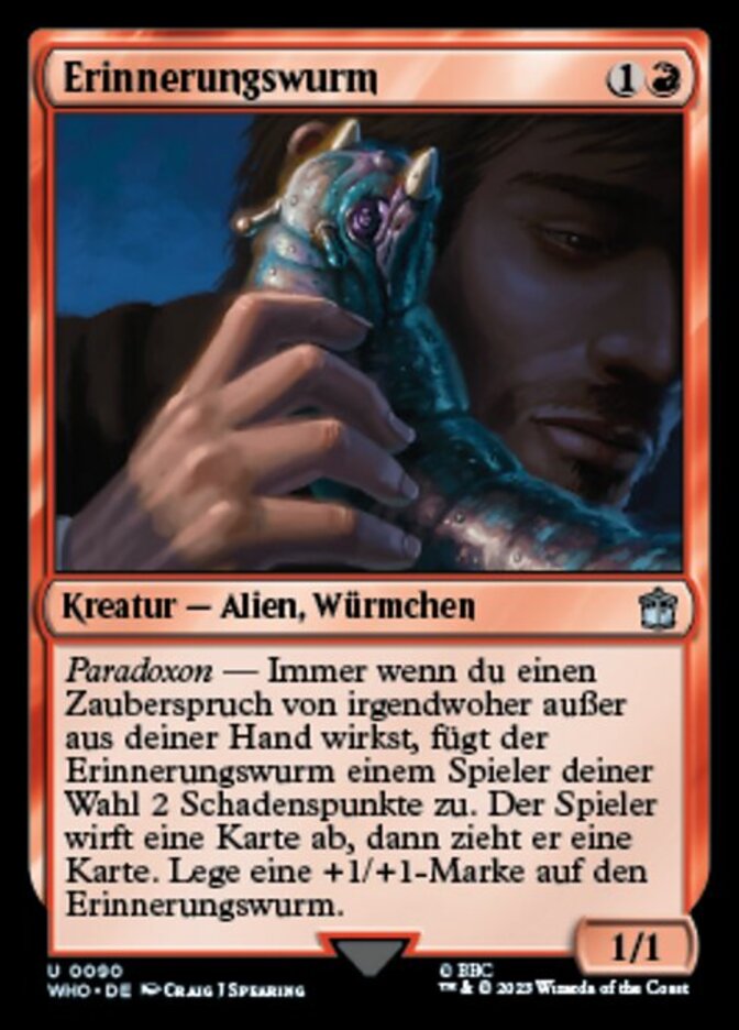 Rules Paradox — Whenever you cast a spell from anywhere other than your hand, Memory Worm deals 2 damage to target player. That player discards a card, then draws a card. Put a +1/+1 counter on Memory Worm.