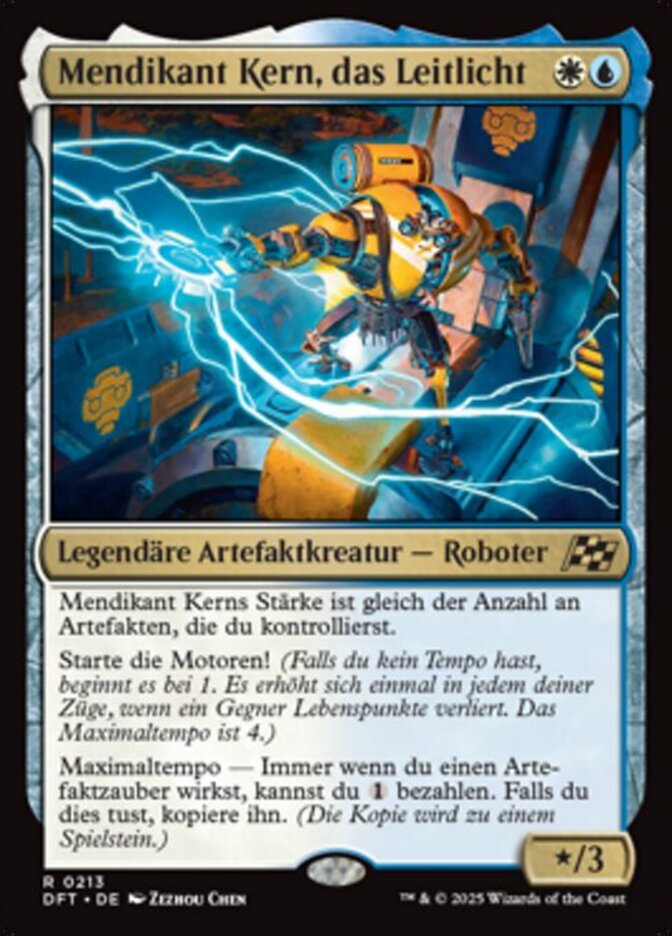 | Rules | Mendicant Core's power is equal to the number of artifacts you control. Start your engines! (If you have no speed, it starts at 1. It increases once on each of your turns when an opponent loses life. Max speed is 4.) Max speed — Whenever you cast an artifact spell, you may pay . If you do, copy it. (The copy becomes a token.) |
