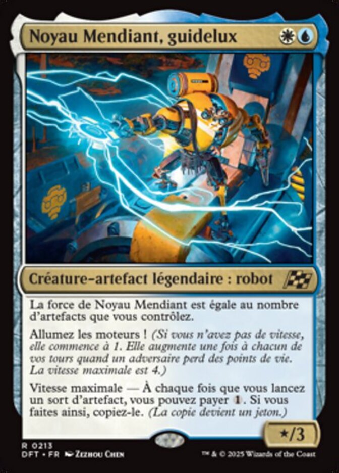 | Rules | Mendicant Core's power is equal to the number of artifacts you control. Start your engines! (If you have no speed, it starts at 1. It increases once on each of your turns when an opponent loses life. Max speed is 4.) Max speed — Whenever you cast an artifact spell, you may pay . If you do, copy it. (The copy becomes a token.) |