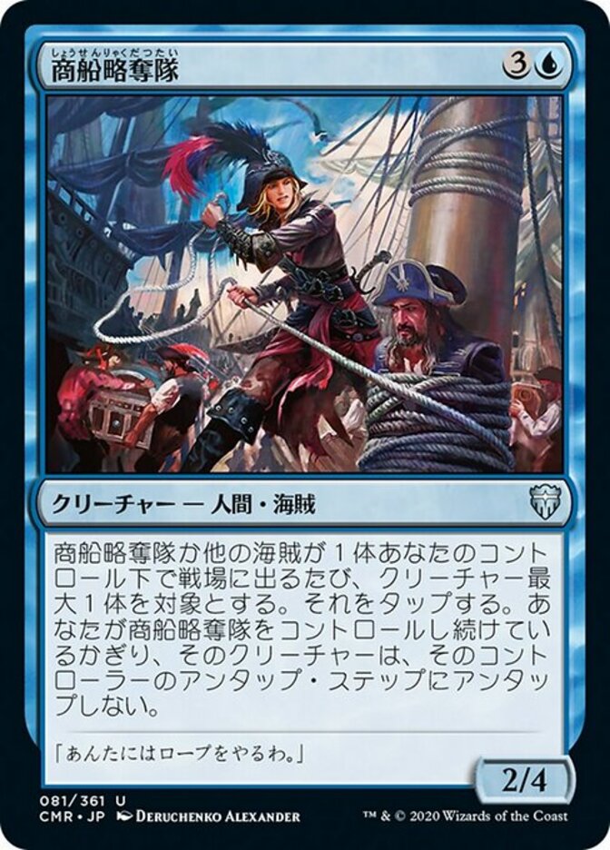 | Rules | Whenever Merchant Raiders or another Pirate enters the battlefield under your control, tap up to one target creature. That creature doesn't untap during its controller's untap step for as long as you control Merchant Raiders. |