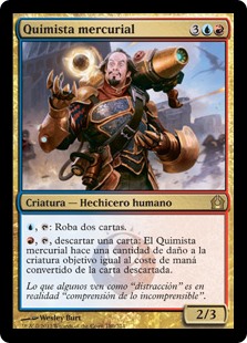 | Rules | , : Draw two cards. , , Discard a card: Mercurial Chemister deals damage to target creature equal to the discarded card's mana value. |