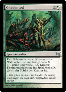 | Rules | Target creature's controller sacrifices it, then creates X 1/1 green and white Elf Warrior creature tokens, where X is that creature's power. |