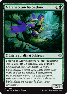 | Rules | When Merfolk Branchwalker enters the battlefield, it explores. (Reveal the top card of your library. Put that card into your hand if it's a land. Otherwise, put a +1/+1 counter on this creature, then put the card back or put it into your graveyard.) |
