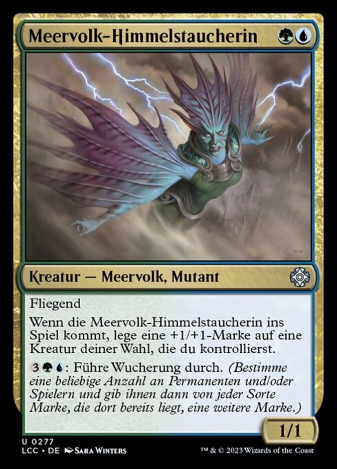 | Rules | Flying When Merfolk Skydiver enters the battlefield, put a +1/+1 counter on target creature you control. : Proliferate. (Choose any number of permanents and/or players, then give each another counter of each kind already there.) |