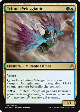 | Rules | Flying When Merfolk Skydiver enters the battlefield, put a +1/+1 counter on target creature you control. : Proliferate. (Choose any number of permanents and/or players, then give each another counter of each kind already there.) |