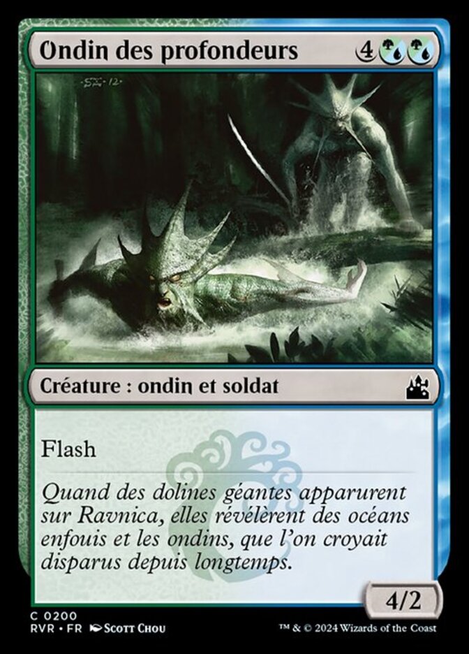 | Flavor | When giant sinkholes opened across Ravnica, they revealed buried oceans and the merfolk, once thought to be extinct. |