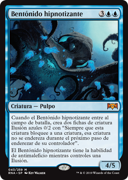 | Rules | When Mesmerizing Benthid enters the battlefield, create two 0/2 blue Illusion creature tokens with "Whenever this creature blocks a creature, that creature doesn't untap during its controller's next untap step." Mesmerizing Benthid has hexproof as long as you control an Illusion. |