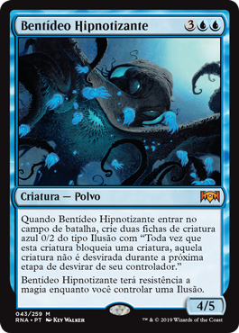 | Rules | When Mesmerizing Benthid enters the battlefield, create two 0/2 blue Illusion creature tokens with "Whenever this creature blocks a creature, that creature doesn't untap during its controller's next untap step." Mesmerizing Benthid has hexproof as long as you control an Illusion. |