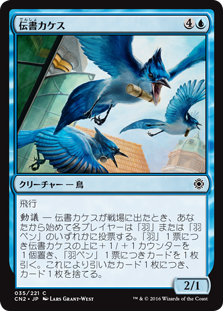 | Rules | Flying Council's dilemma — When Messenger Jays enters the battlefield, starting with you, each player votes for feather or quill. Put a +1/+1 counter on Messenger Jays for each feather vote and draw a card for each quill vote. For each card drawn this way, discard a card. |