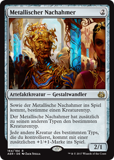 | Rules | As Metallic Mimic enters the battlefield, choose a creature type. Metallic Mimic is the chosen type in addition to its other types. Each other creature you control of the chosen type enters the battlefield with an additional +1/+1 counter on it. |