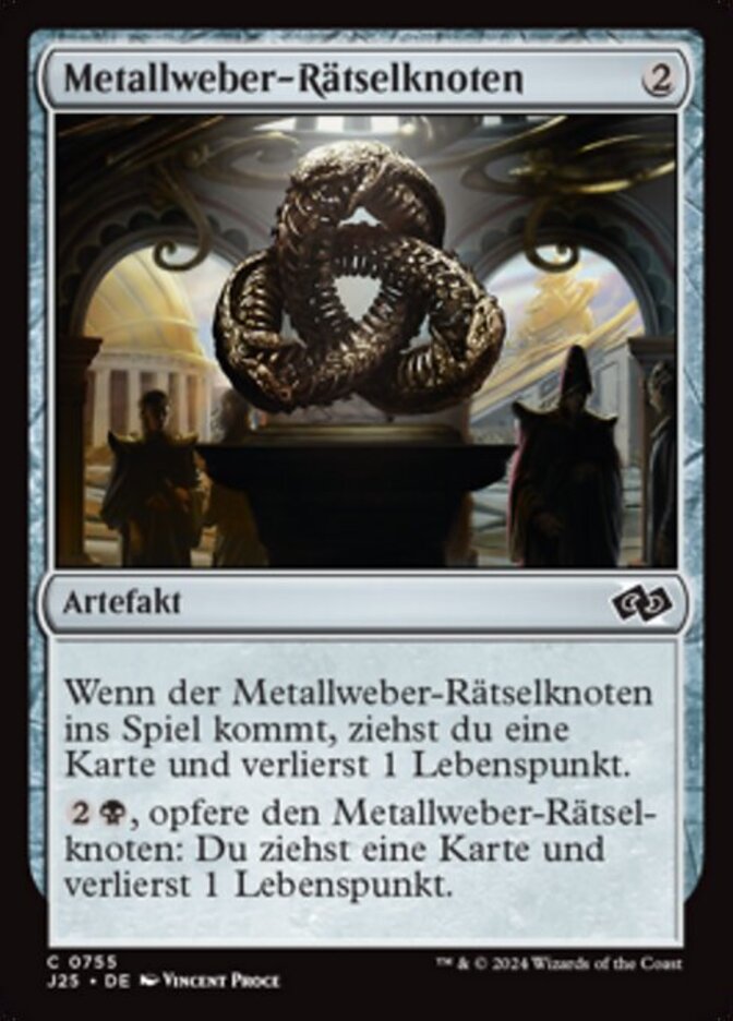 | Rules | When Metalspinner's Puzzleknot enters the battlefield, you draw a card and you lose 1 life. , Sacrifice Metalspinner's Puzzleknot: You draw a card and you lose 1 life. |