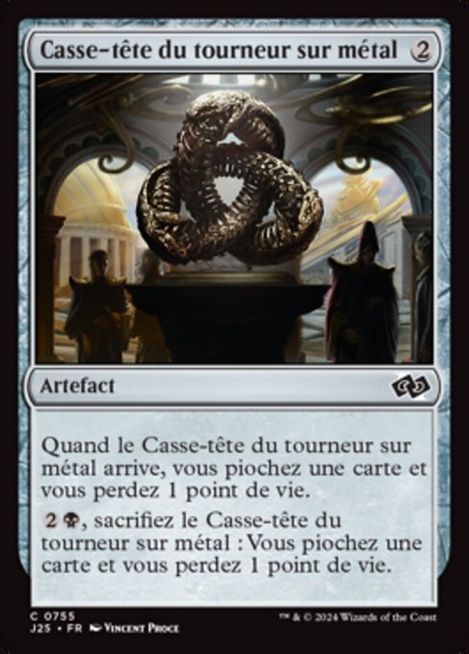 | Rules | When Metalspinner's Puzzleknot enters the battlefield, you draw a card and you lose 1 life. , Sacrifice Metalspinner's Puzzleknot: You draw a card and you lose 1 life. |