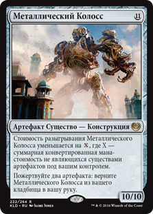 | Rules | This spell costs less to cast, where X is the total mana value of noncreature artifacts you control. Sacrifice two artifacts: Return Metalwork Colossus from your graveyard to your hand. |