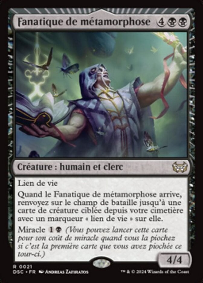 | Rules | Lifelink When Metamorphosis Fanatic enters, return up to one target creature card from your graveyard to the battlefield with a lifelink counter on it. Miracle (You may cast this card for its miracle cost when you draw it if it's the first card you drew this turn.) |