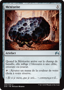 | Rules | When Meteorite enters the battlefield, it deals 2 damage to any target. : Add one mana of any color. |