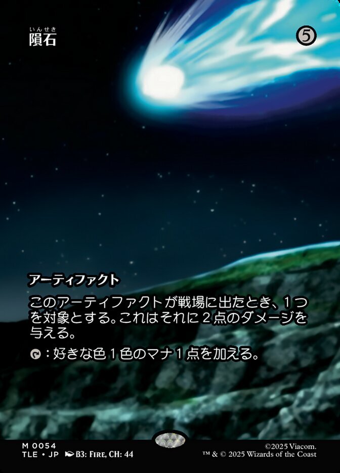 | Rules | When Meteorite enters the battlefield, it deals 2 damage to any target. : Add one mana of any color. |