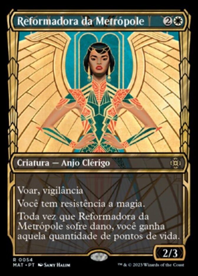 | Rules | Flying, vigilance You have hexproof. Whenever Metropolis Reformer is dealt damage, you gain that much life. |