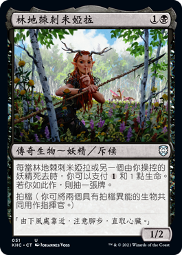 | Rules | Whenever Miara, Thorn of the Glade or another Elf you control dies, you may pay and 1 life. If you do, draw a card. Partner (You can have two commanders if both have partner.) |