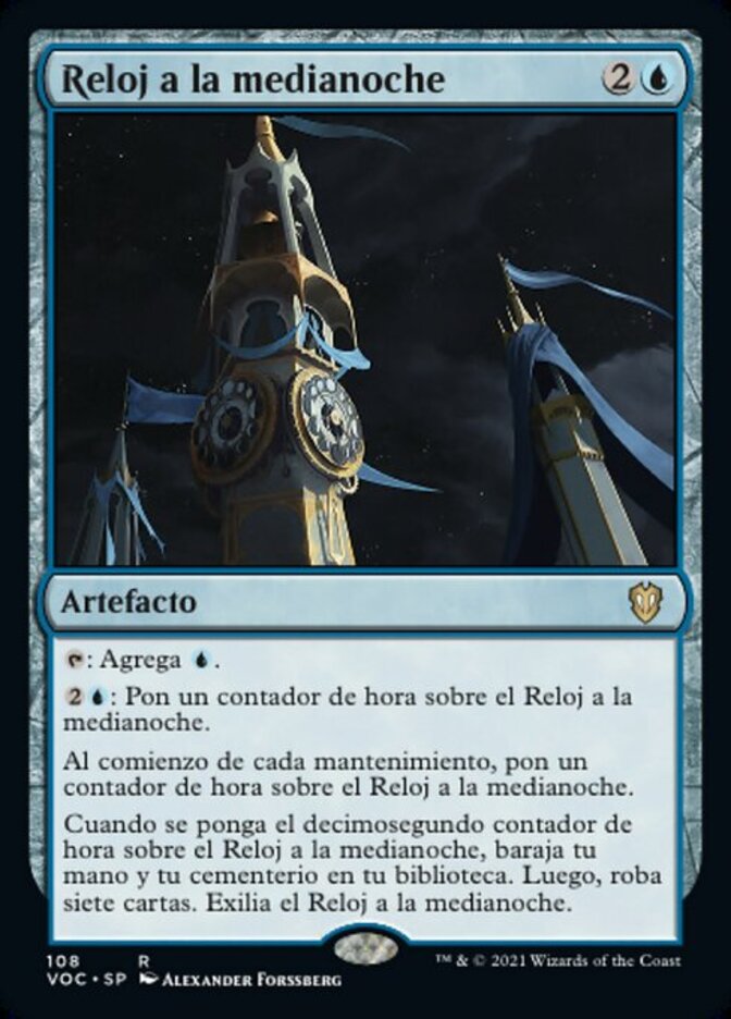 | Rules | : Add . : Put an hour counter on Midnight Clock. At the beginning of each upkeep, put an hour counter on Midnight Clock. When the twelfth hour counter is put on Midnight Clock, shuffle your hand and graveyard into your library, then draw seven cards. Exile Midnight Clock. |