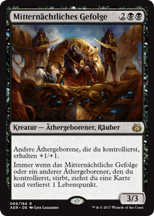 | Rules | Other Aetherborn you control get +1/+1. Whenever Midnight Entourage or another Aetherborn you control dies, you draw a card and you lose 1 life. |
