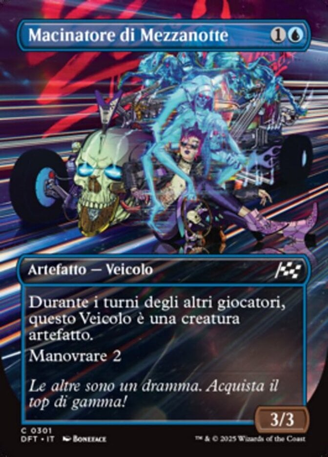 | Rules | During turns other than yours, this Vehicle is an artifact creature. Crew 2 (Tap any number of creatures you control with total power 2 or more: This Vehicle becomes an artifact creature until end of turn.) |