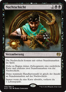 | Rules | Midnight Oil enters the battlefield with seven hour counters on it. At the beginning of your draw step, draw an additional card and remove two hour counters from Midnight Oil. Your maximum hand size is equal to the number of hour counters on Midnight Oil. Whenever you discard a card, you lose 1 life. |