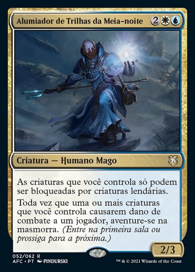 | Rules | Creatures you control can't be blocked except by legendary creatures. Whenever one or more creatures you control deal combat damage to a player, venture into the dungeon. (Enter the first room or advance to the next room.) |