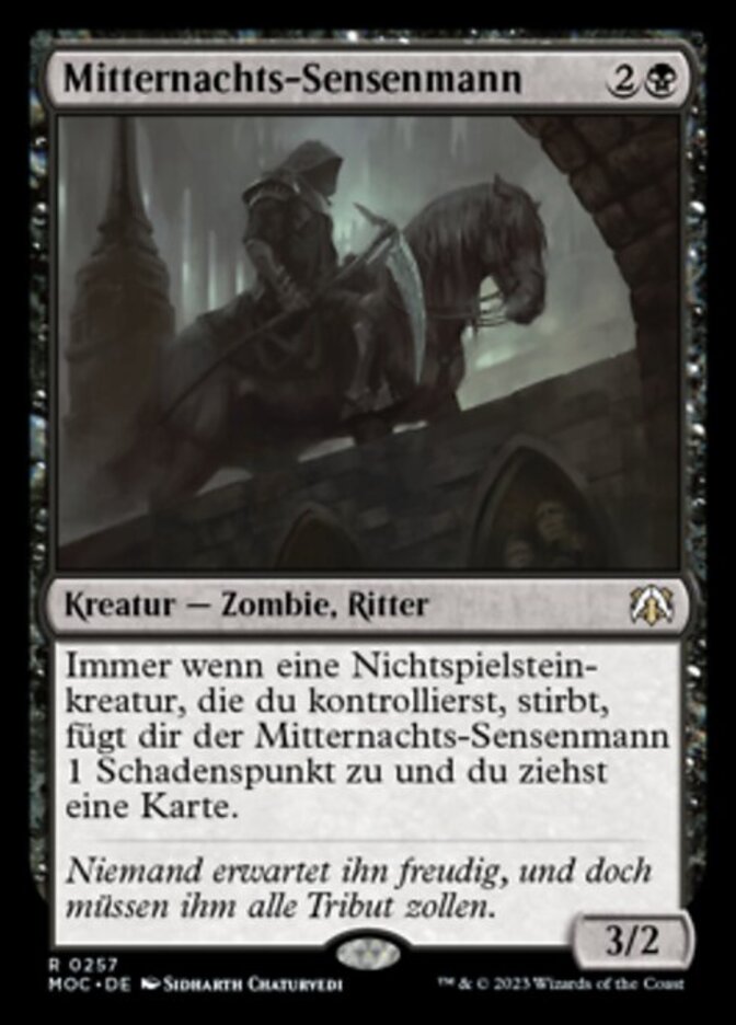 | Rules | Whenever a nontoken creature you control dies, Midnight Reaper deals 1 damage to you and you draw a card. |