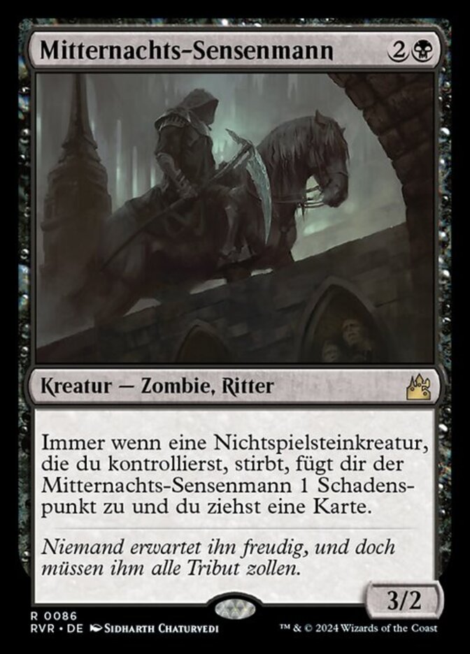 | Rules | Whenever a nontoken creature you control dies, Midnight Reaper deals 1 damage to you and you draw a card. |