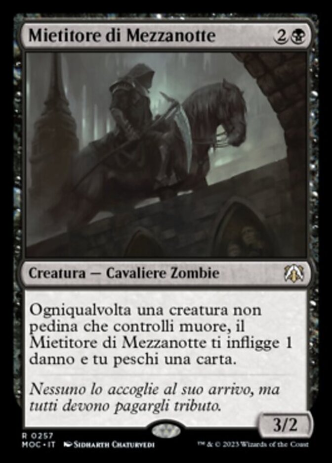 | Rules | Whenever a nontoken creature you control dies, Midnight Reaper deals 1 damage to you and you draw a card. |