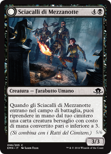 | Rules | When Midnight Scavengers enters the battlefield, you may return target creature card with mana value 3 or less from your graveyard to your hand. (Melds with Graf Rats.) |