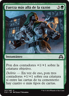 | Rules | Put two +1/+1 counters on target creature. Delirium — Put three +1/+1 counters on that creature instead if there are four or more card types among cards in your graveyard. |