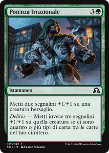 | Rules | Put two +1/+1 counters on target creature. Delirium — Put three +1/+1 counters on that creature instead if there are four or more card types among cards in your graveyard. |