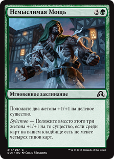 | Rules | Put two +1/+1 counters on target creature. Delirium — Put three +1/+1 counters on that creature instead if there are four or more card types among cards in your graveyard. |