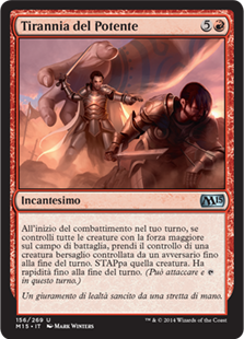 | Rules | At the beginning of combat on your turn, if you control each creature on the battlefield with the greatest power, gain control of target creature an opponent controls until end of turn. Untap that creature. It gains haste until end of turn. (It can attack and this turn.) |