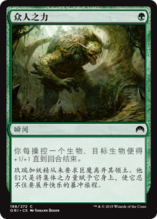 | Rules | Target creature gets +1/+1 until end of turn for each creature you control. |