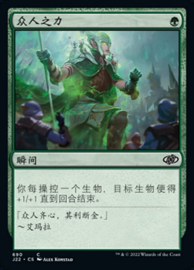 | Rules | Target creature gets +1/+1 until end of turn for each creature you control. |