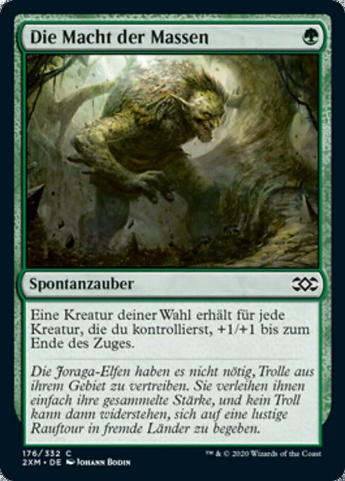 | Rules | Target creature gets +1/+1 until end of turn for each creature you control. |