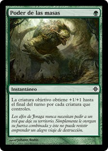 | Rules | Target creature gets +1/+1 until end of turn for each creature you control. |