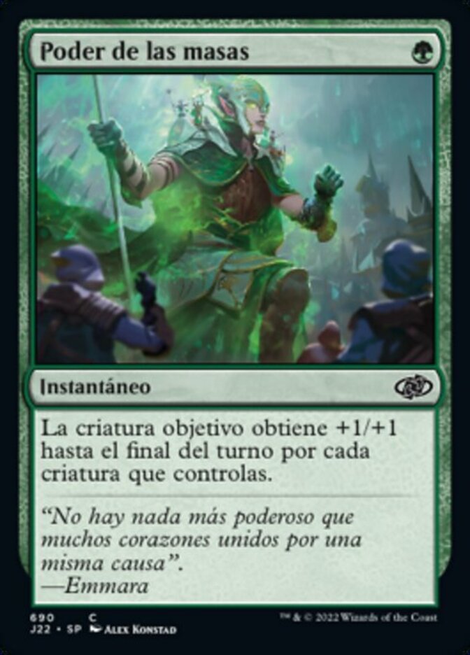 | Rules | Target creature gets +1/+1 until end of turn for each creature you control. |