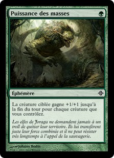 | Rules | Target creature gets +1/+1 until end of turn for each creature you control. |