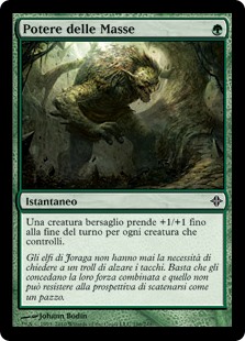 | Rules | Target creature gets +1/+1 until end of turn for each creature you control. |
