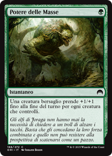 | Rules | Target creature gets +1/+1 until end of turn for each creature you control. |