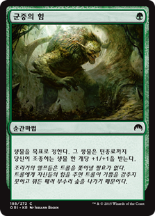 | Rules | Target creature gets +1/+1 until end of turn for each creature you control. |